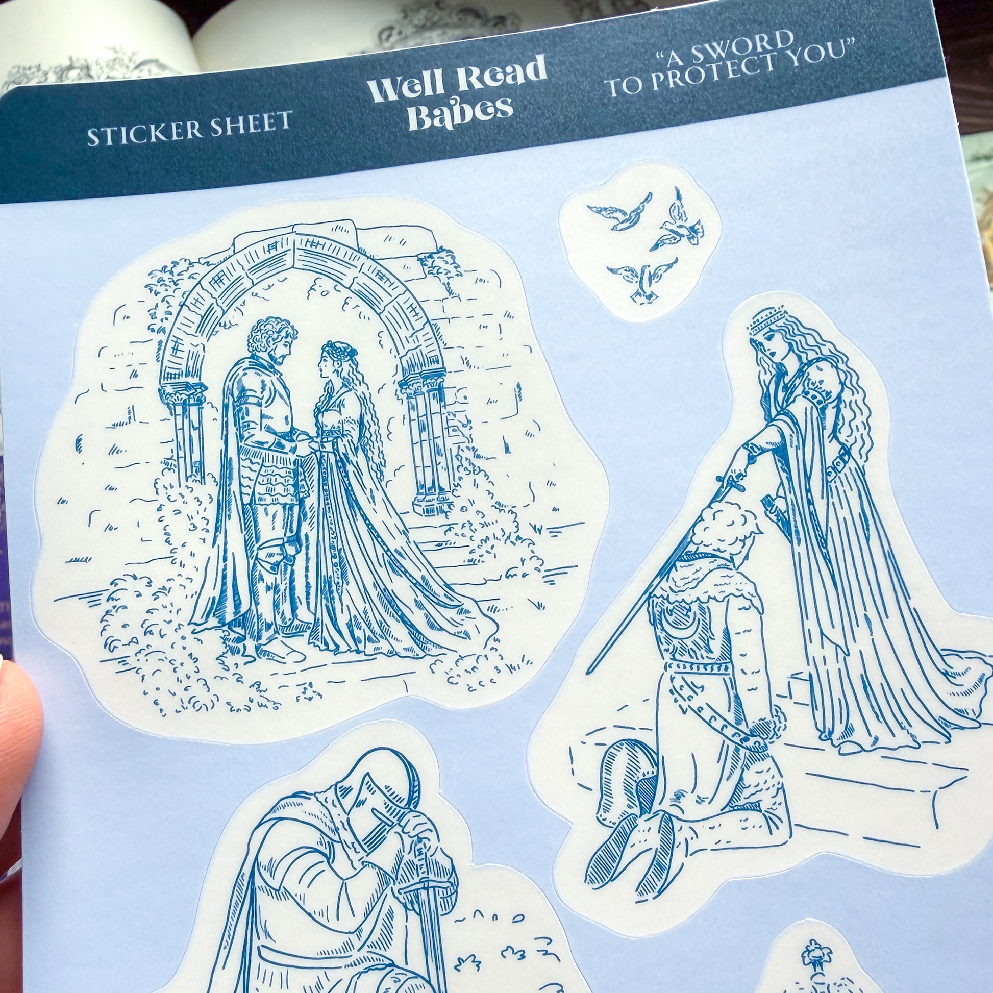 Part of a larger medieval collection, this sticker sheet is designed for readers who love emotionally rich fantasy, historical romance, and timeless bookish aesthetics. It also makes a thoughtful bookish gift or stocking stuffer for fantasy readers and stationery lovers.