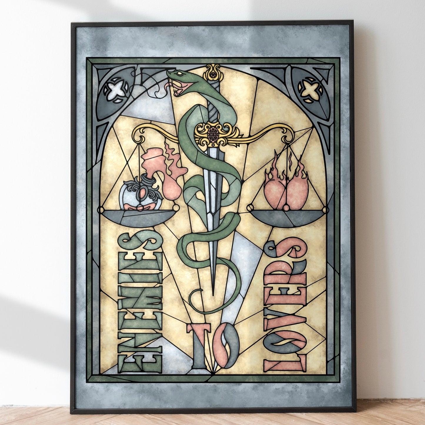 Book Tropes Enemies To Lovers Print - Bookish Wall Art Stained Glass Style Wall Decor