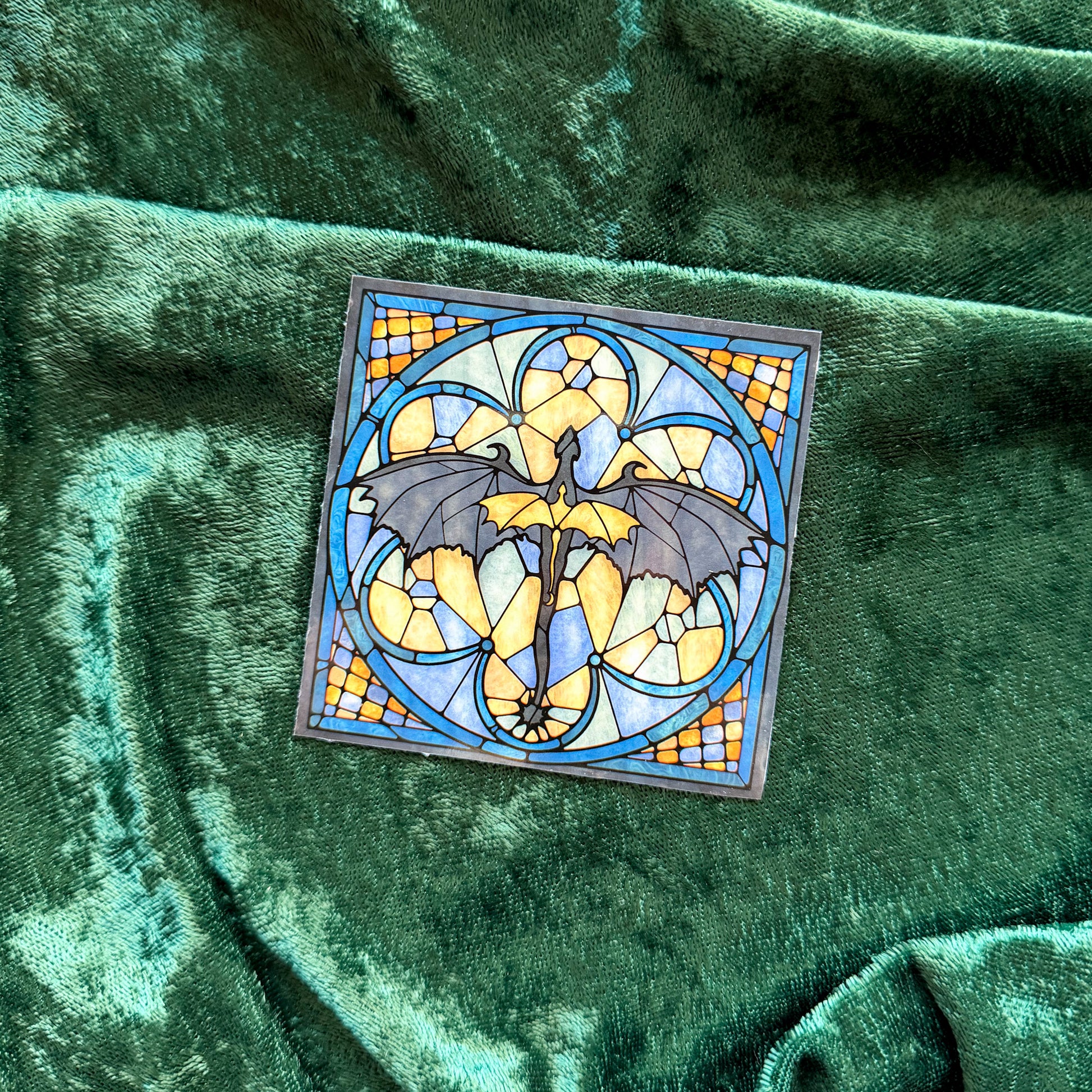 Featuring two of our favorite fictional dragons, this design is inspired by classic stained glass windows and epic fantasy aesthetics.