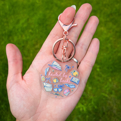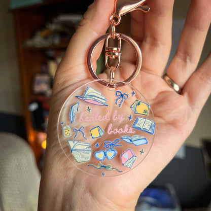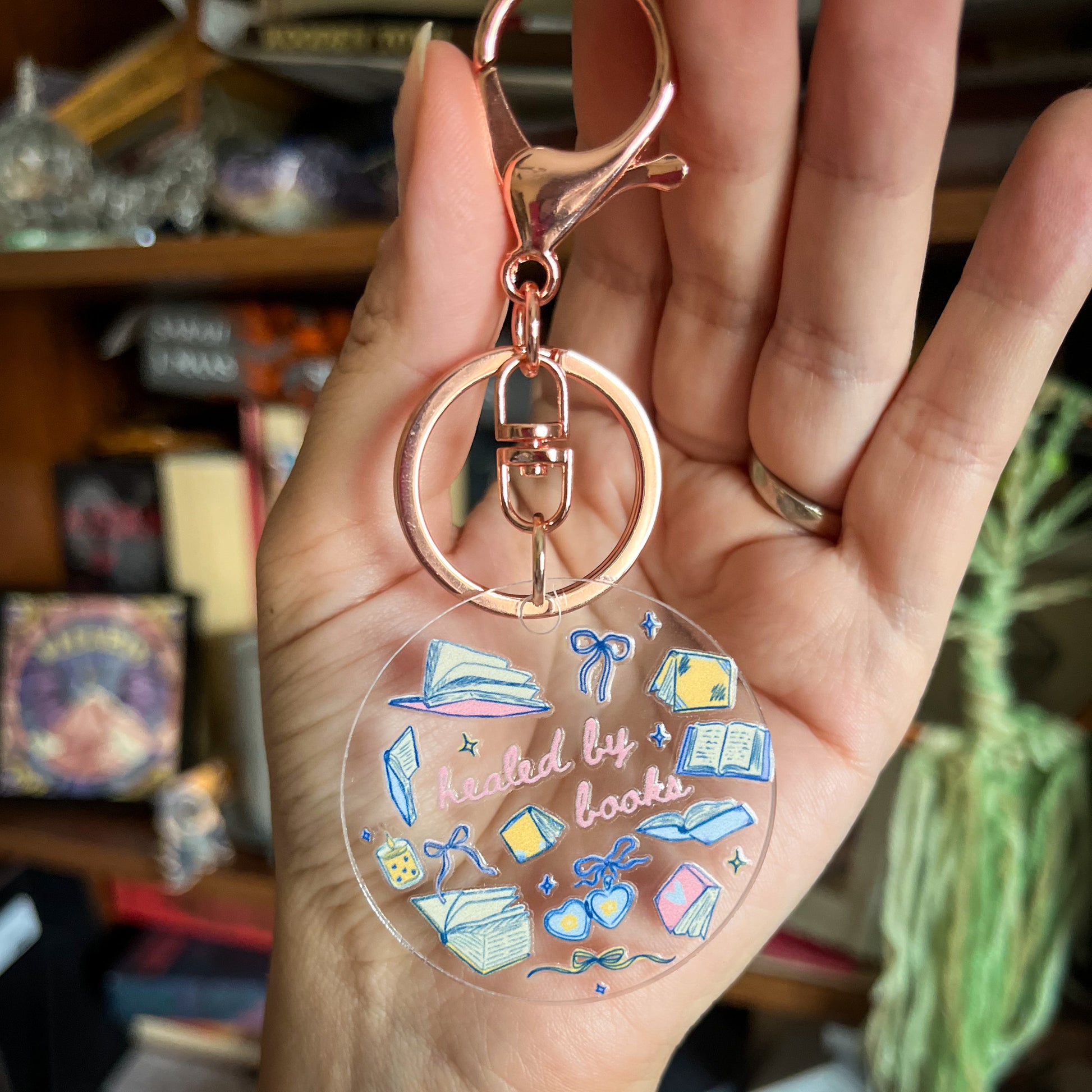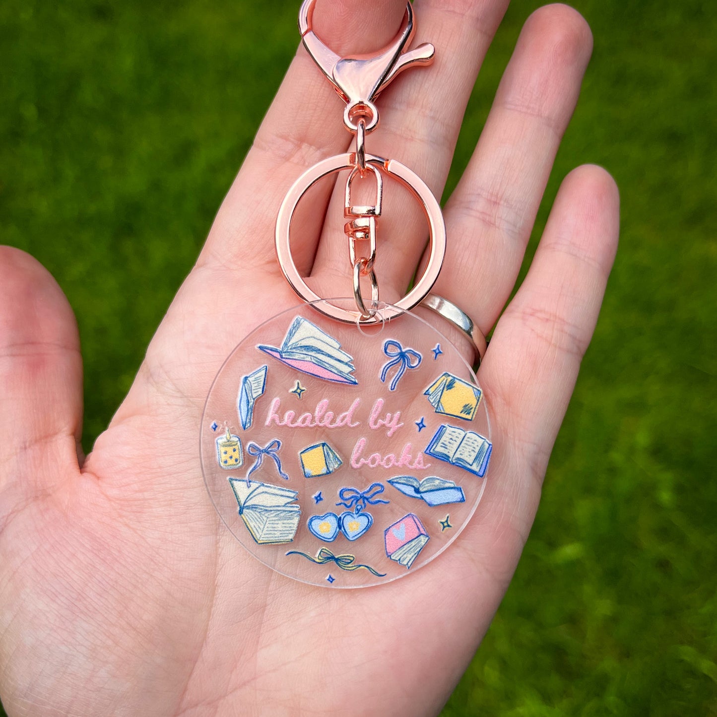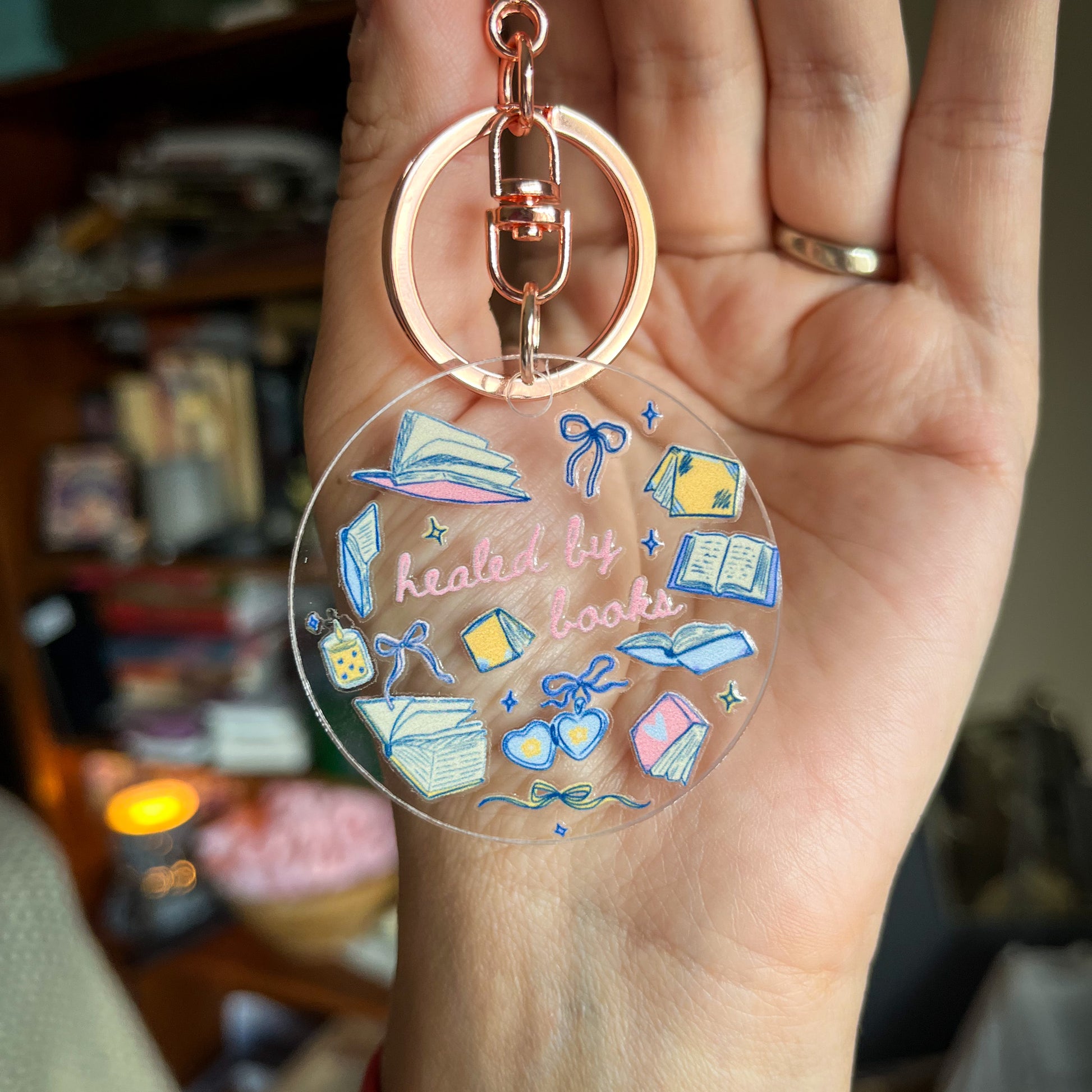 Healed by Books – Clear Acrylic Keychain for Readers - Book Lover Gift